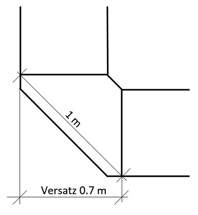 Eckelemente: diagonal 1 m, Versatz 0,7 m